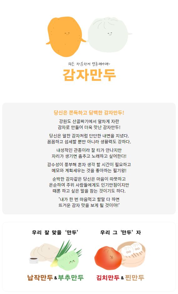 만두 유형으로 알아보는 성격유형 테스트입니다