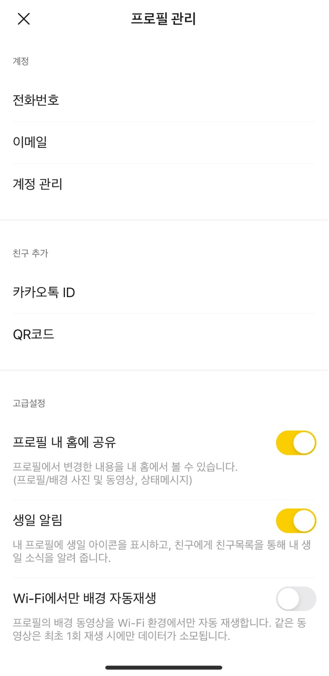 카카오톡 설정 - 프로필 관리 - 생일 알림 활성화