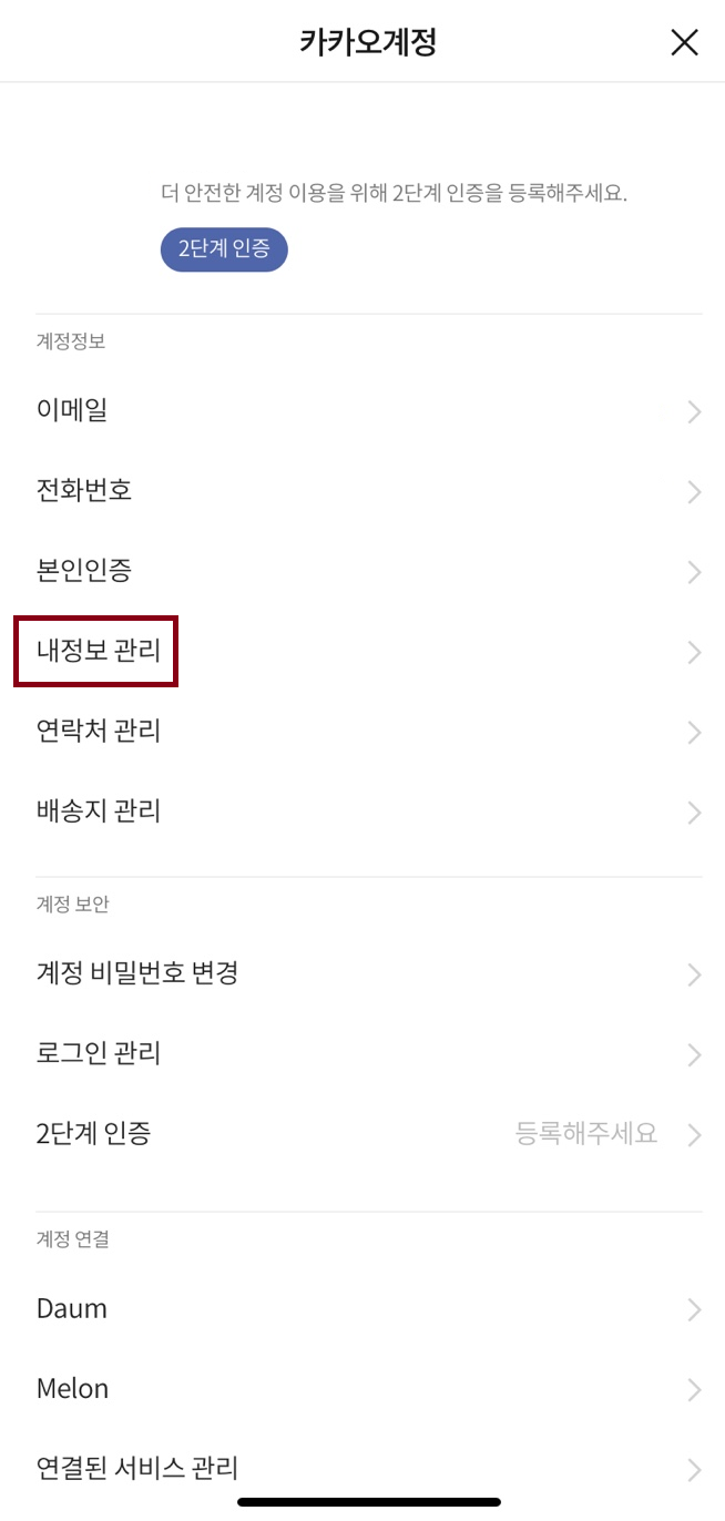 설정 - 개인/보안 - 카카오계정 - 내정보관리 - 생일설정