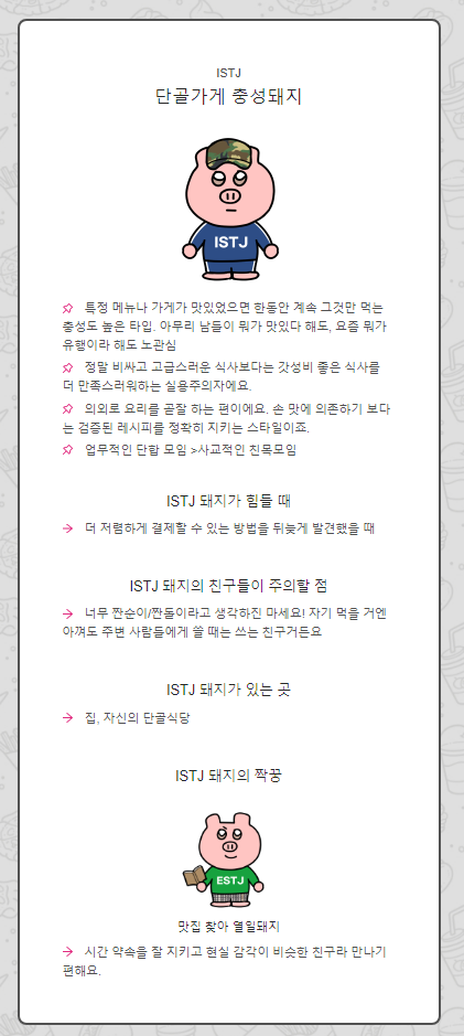 MBTI 성격유형 테스트를 돼지에 빗대어 만들어진 테스트로