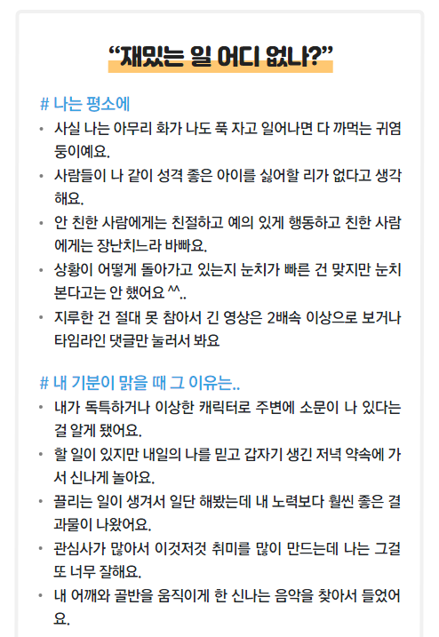 | 내가보는 너는 이런사람이아 너BTI (0) | 2021.07.13 |