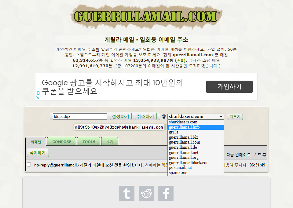생각보다 간단한 방법으로 1회용 이메일을 생성할 수 있어서 좋은 거 같아요.