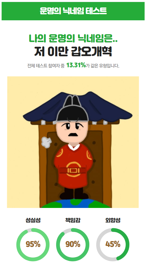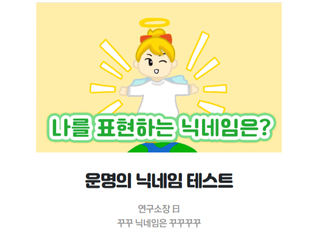 오늘은 자신의 운명 닉네임을 알아보는 테스트를 가져왔어요