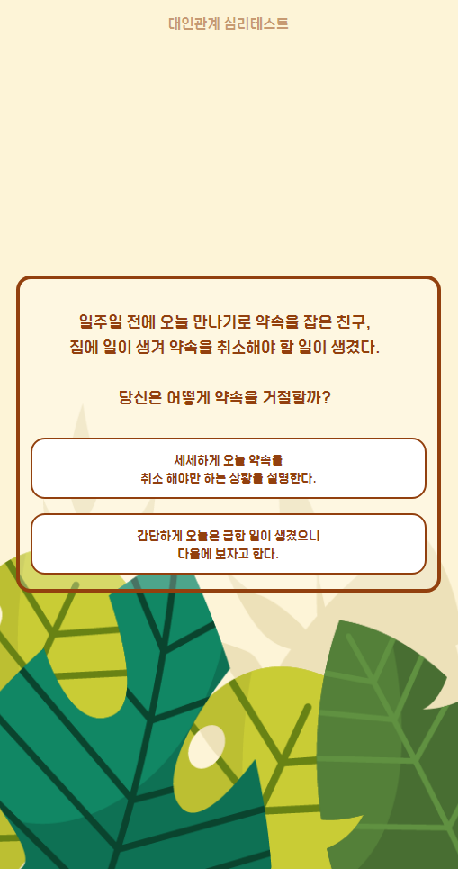 자신의 대인관계 타입을 알아볼 수 있는 테스트입니다
