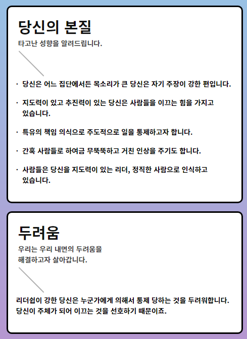 결과 유형으로 자신을 단정 지을 수 없다고 먼저 설명해줘요