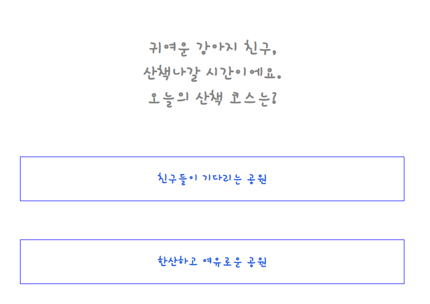 산책가는 일에 일어날 수 있는 상황문답으로 구성되어있습니다