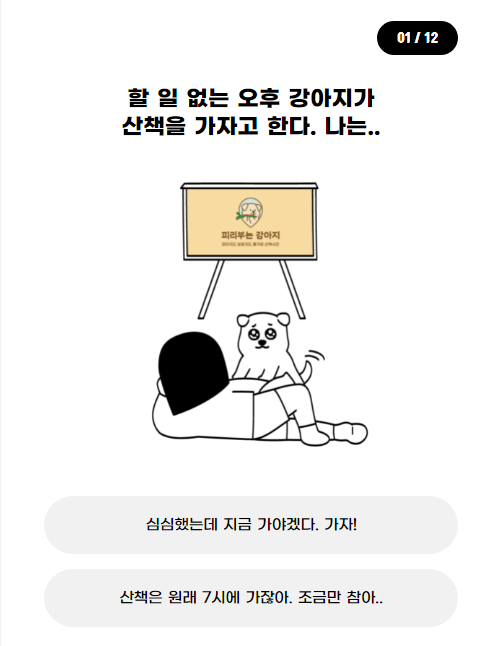 강아지와 관련된 상황 문답이에요