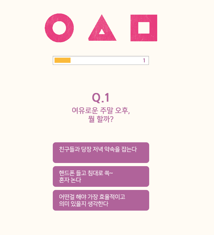 자신의 성격을 파악할 수 있는 단순한 질문들로 구성되어있는데