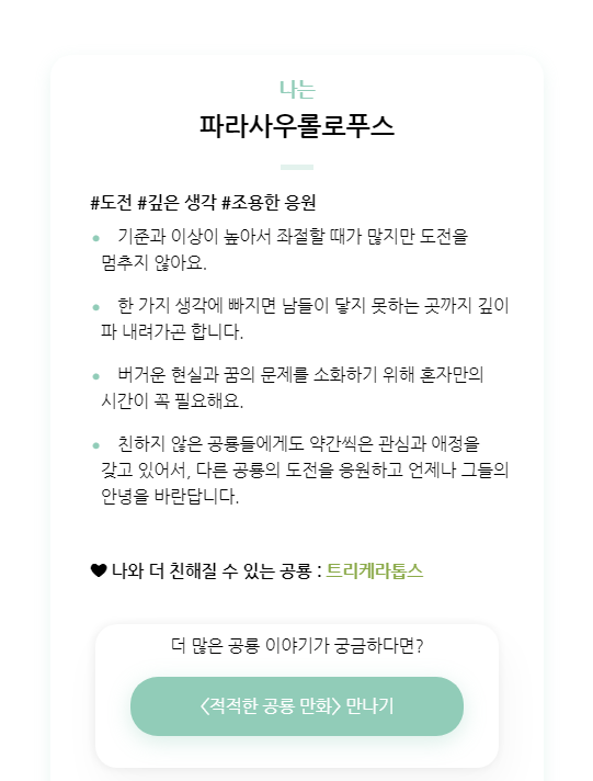 평소에 공룡에 관심이 있으셨다면 더 추천해볼 만한 테스트입니다
