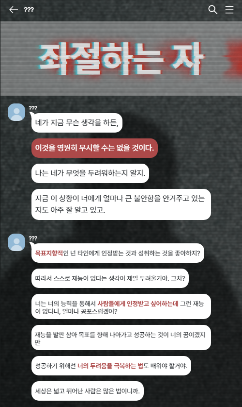 스스로 재능이 없는걸 가장 두려워한다고 해요