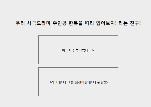 첫 번째, 친구가 사극 드라마 주인공 한복을 따라 입자 하면