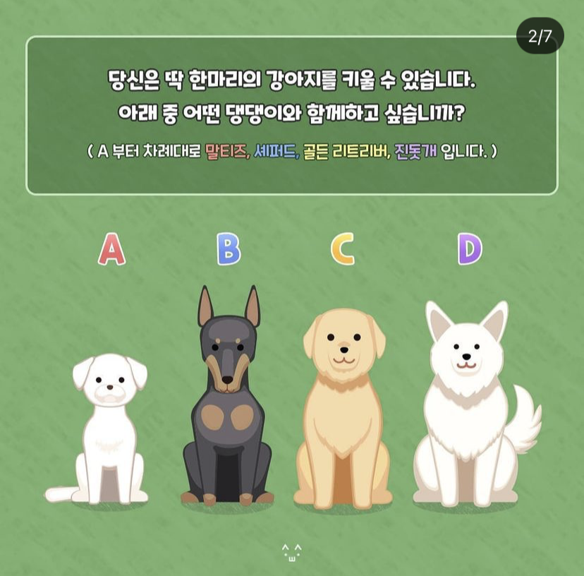 인스타에서 발견한 댕댕이 테스트를 가져왔습니다