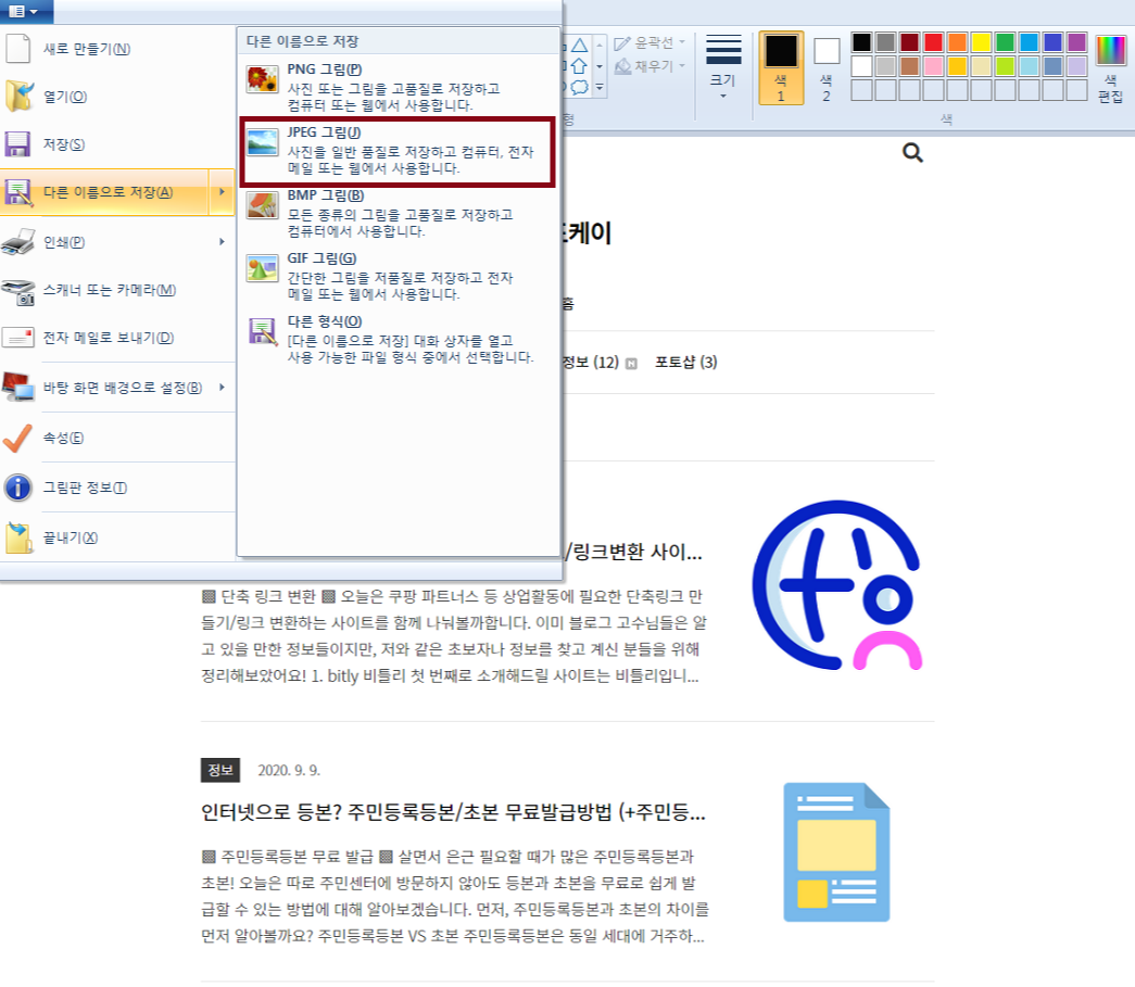 그림판으로 사진 용량을 줄이는 법은 아주 간단합니다.