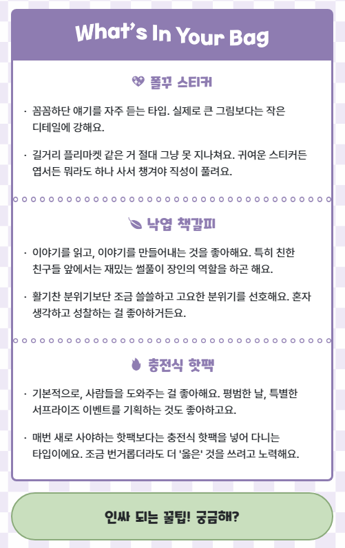 가방 속 나의 인싸템과 성격을 알아볼 수 있는