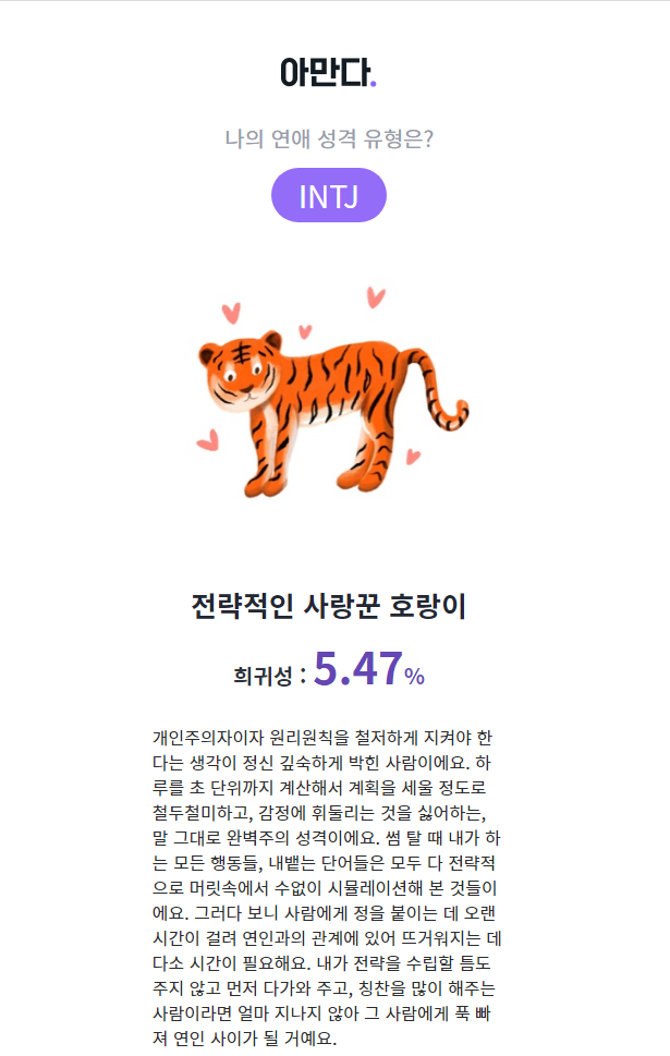 연애할 때 나의 모습을 MBTI에 의거해 알려주는 테스트예요