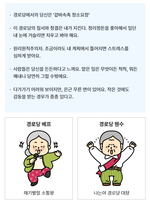 나의 경로당 라이프는 어떤지 알아보는 성격 테스트예요