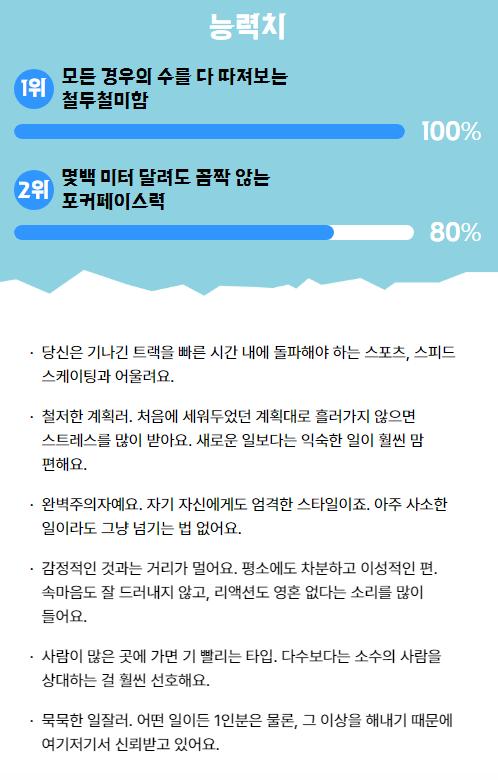오늘은 나한테 잘 맞는 동계 스포츠 항목을 알아보는