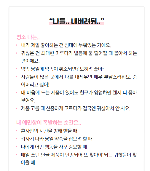 사실 예민보다는 성격 테스트에 더 유사한 거 같지만