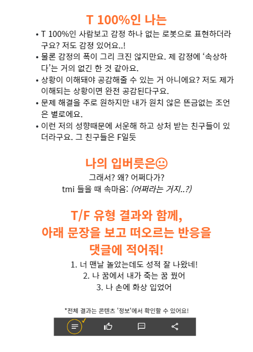 여러분은 T에 가까우세요? 아님 F에 가까우세요?
