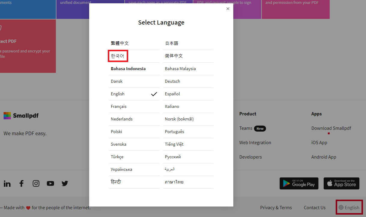 다양한 PDF 변환이 가능한 사이트는 Smallpdf입니다.