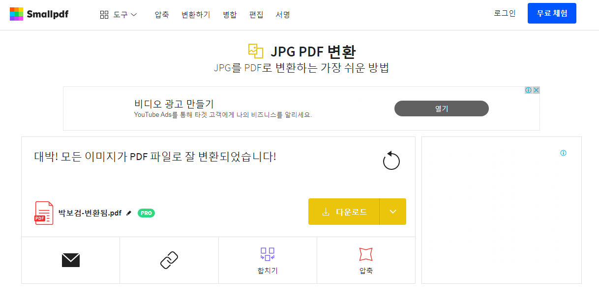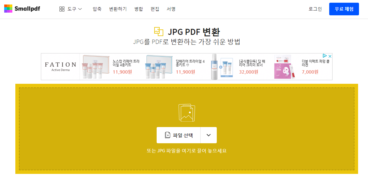 홈페이지에서 JPG PDF 변환 클릭 - 이미지를 불러오면 끝