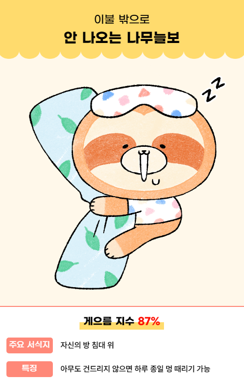 느긋하지만 눈치는 빨라 상황판단도 빠른 게으름뱅이