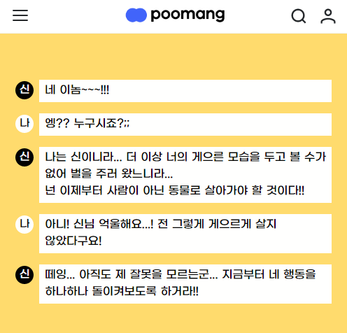 문항은 신이 물어보는 대화형