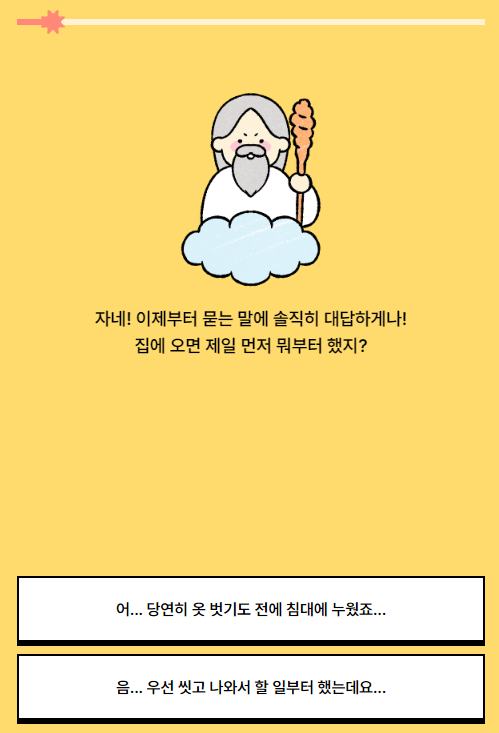문항은 신이 물어보는 대화형