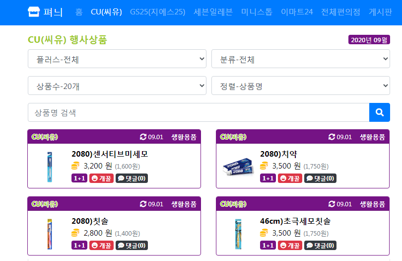 편의점 1+1 2+1 3+1 행사상품 검색을 빠르게, 펴늬