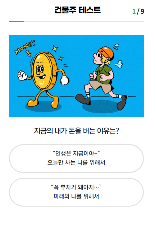 평소 자신의 경제성향을 알 수 있는 문제들로 구성되어있어요