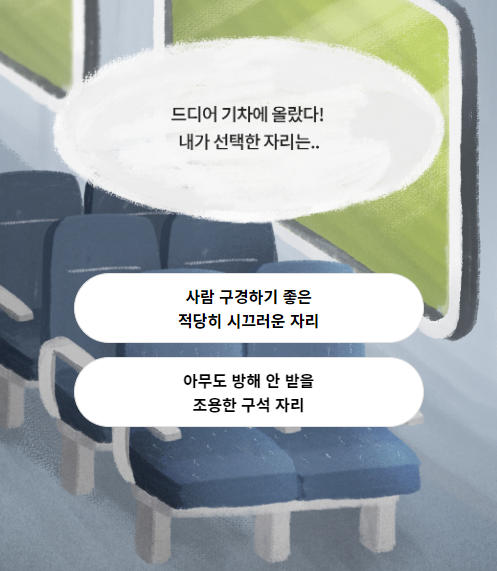 기차여행을 출발하면서 벌어지는 상황 관련 질문으로 구성