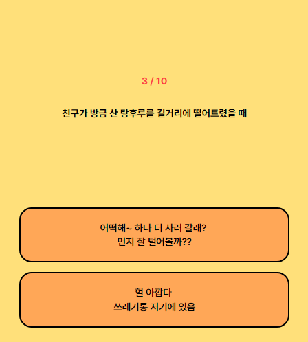 주로 성격을 엿볼 수 있는 상황들
