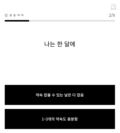 9개 문항이라 쉽고 간결하게 테스트도 가능합니다