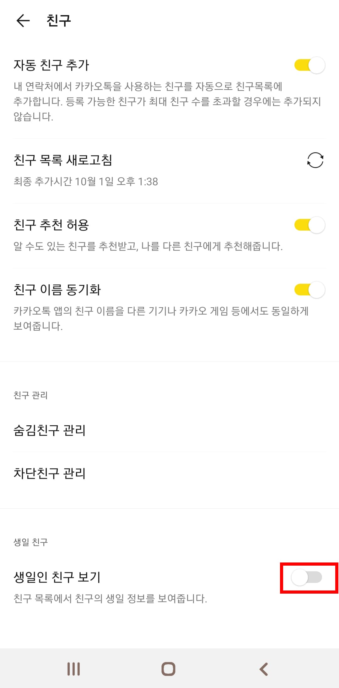 그림에서 생일인 친구 보기 옆에 버튼을 눌러
