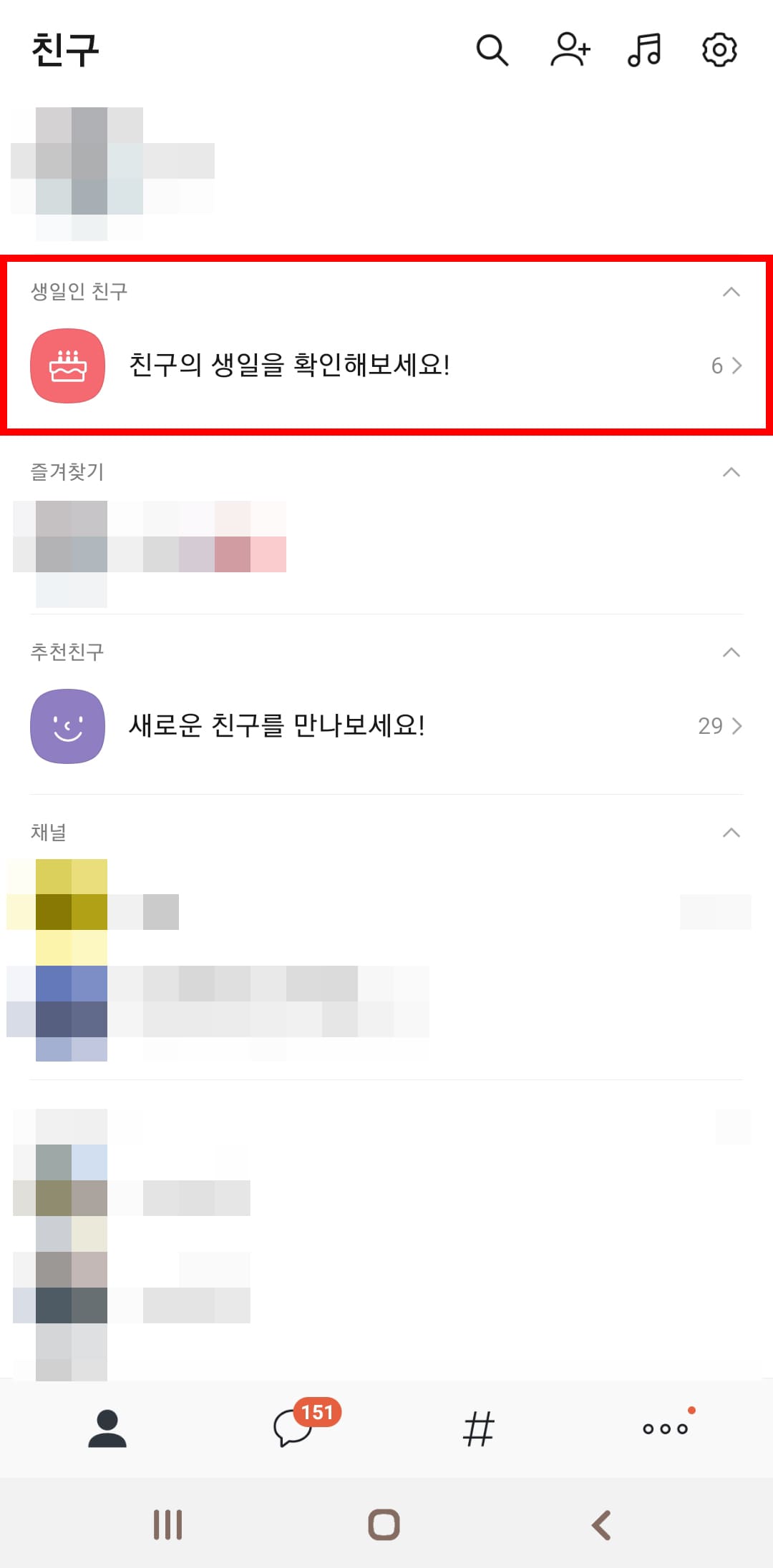 그림에서 생일인 친구 보기 옆에 버튼을 눌러