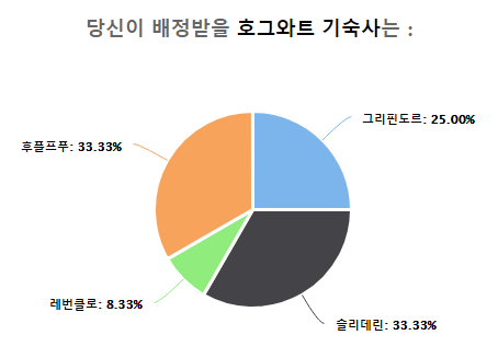 배정받을 호그와트 기숙사가 퍼센트 별로 나오는 걸 확인할 수 있어요.