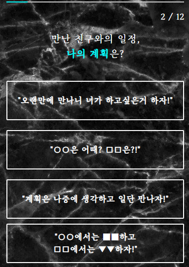 성격을 유추할 수 있는 12가지 문항에 답을 하면