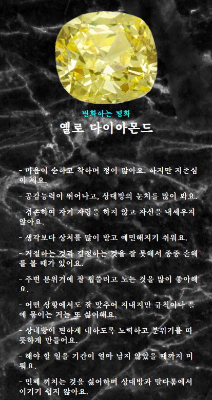 오늘은 보석으로 알아보는 성격 MBTI 검사를 가지고 왔습니다.