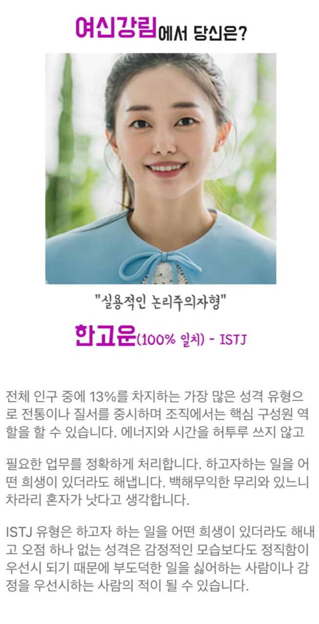 이번에는 ISTJ유형의 한고운 님 나왔네요!