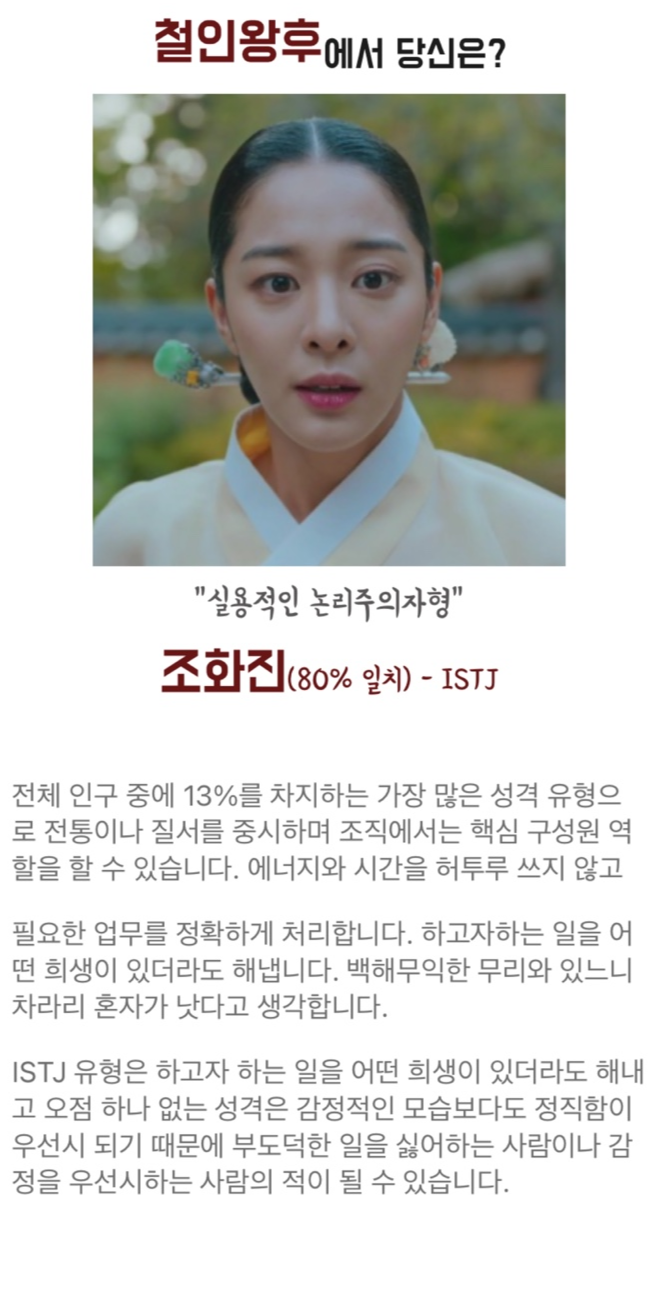 가장 비슷한 성격유형의 철인왕후 등장인물을 알려준답니다.