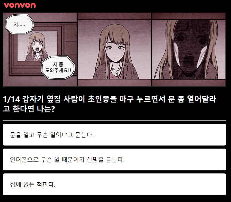 웹툰이 원작이다 보니 테스트 문답 역시 웹툰의 캐릭터를 가져왔더라구요! 더 실감 남