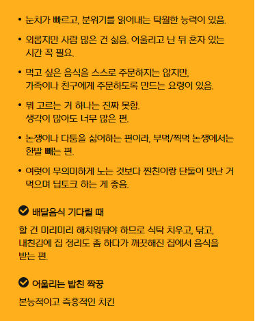 테스트의 핵심을 가장 잘 설명하고 있는 푸드 FBTI테스트는