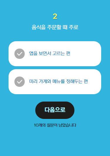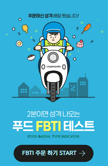 바로 쿠팡 이츠의 개인 성향을 알 수 있는 심리테스트입니다.
