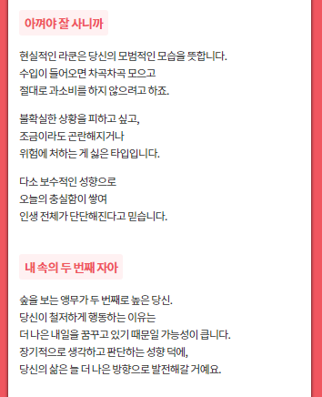 | 내 동물같은 본능 사주+심리테스트결합 동물테스트! (0) | 2021.02.25 |