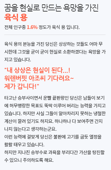 독특하게 사주와 심리테스트가 결합한 형식입니다.