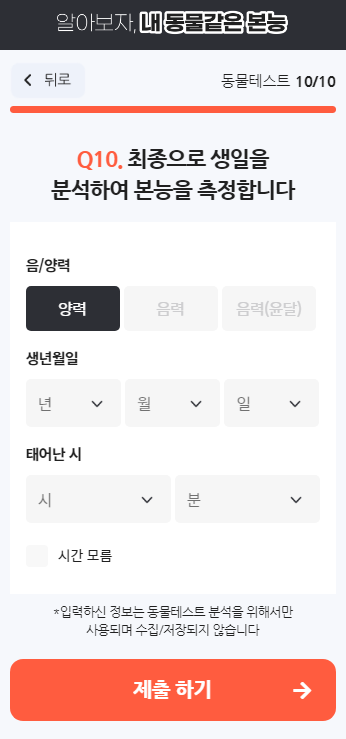 마지막에는 생년월일 / 음양력 / 태어난 시를 입력해줘야