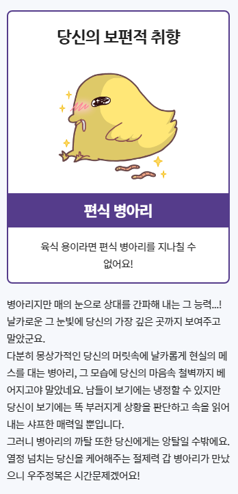 이렇게 본능동물말고도 이상형의 동물도 확인 할 수 있어요!