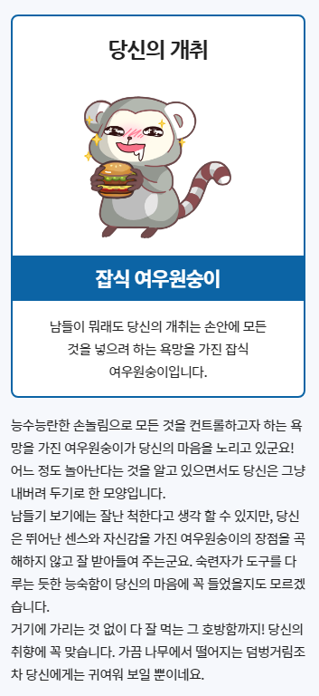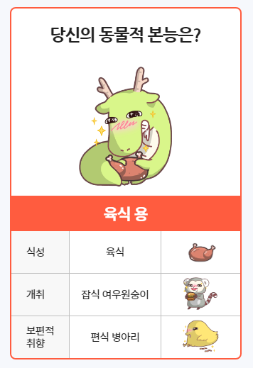 이렇게 본능동물말고도 이상형의 동물도 확인 할 수 있어요!