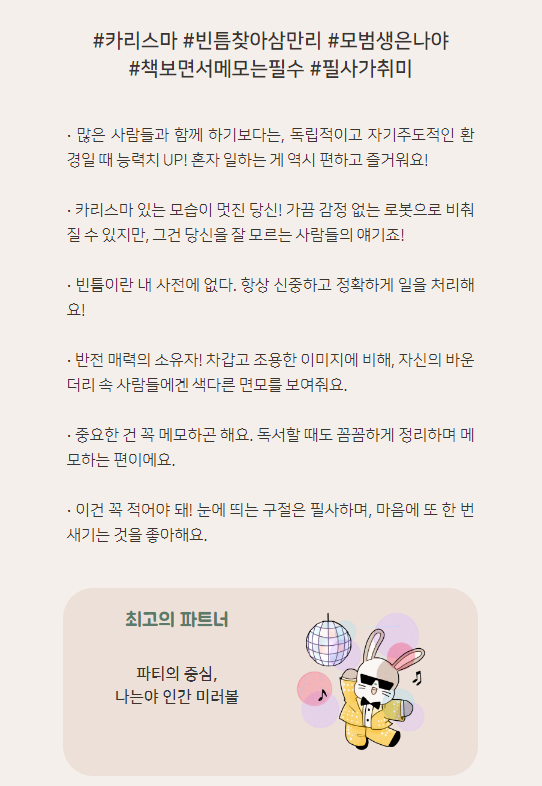 메모와 필사가 중점이라는 모범생 토끼와 잘 맞는 파트너는