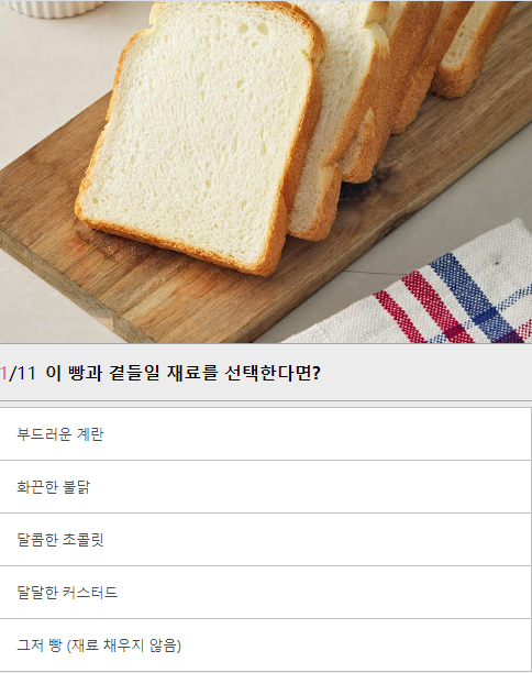 빵을 바라보는 저의 취향과 생각을 알 수 있는 문제들이더라구요.